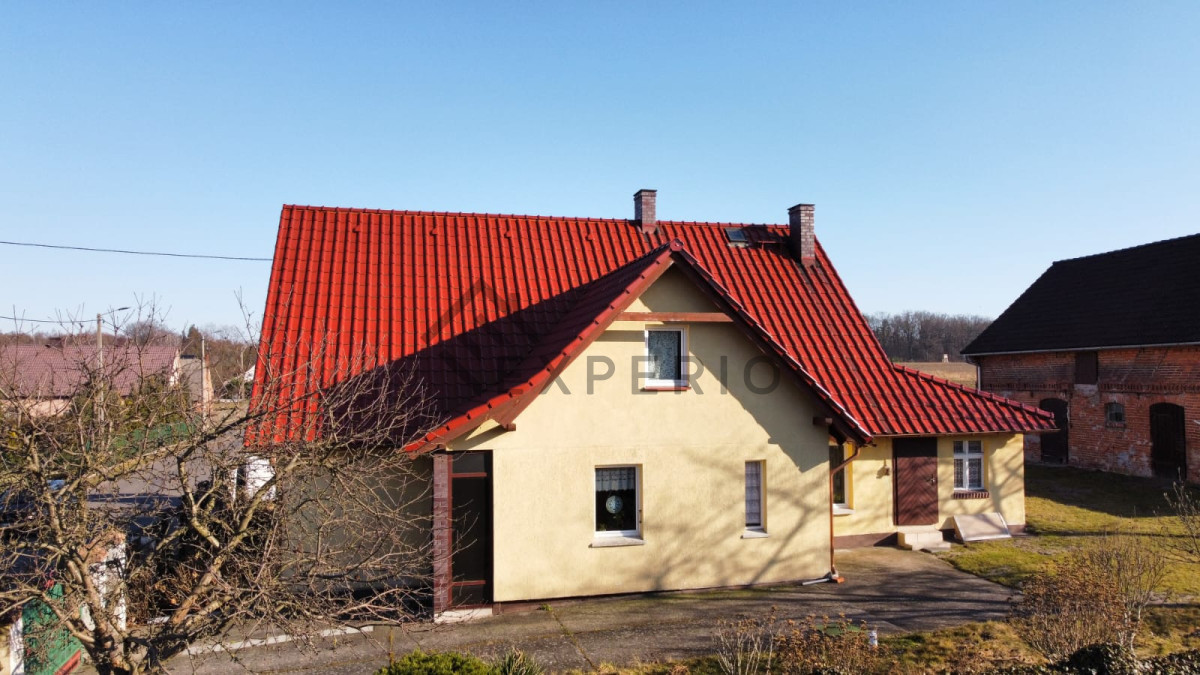Dom - ceglany, częściowo podpiwniczony, wybudowany w pierwszej połowie XX w. Wykonano częściowy remont polegający na wymianie dachu oraz dociepleniu poddasza. Budynek nieocieplony, okna PCV ( w dwóch pomieszczeniach okna drewniane), na podłogach w pokojach panele, w pozostałych pomieszczeniach płytki. Strop drewniany. Poddasze z możliwością adaptacji na pokoje mieszkalne.